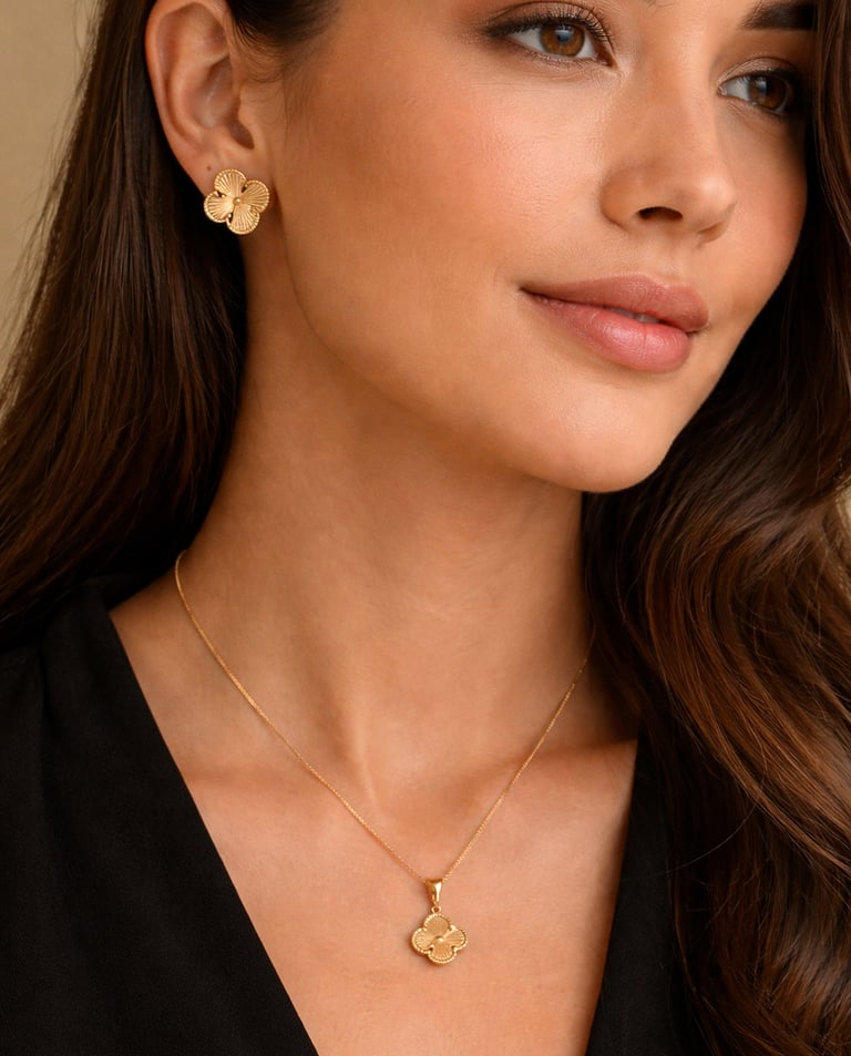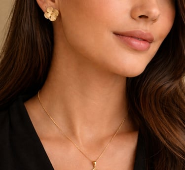 We offer genuine 14k and 18k gold jewelry selected for the way women live today: beautifully made, lightweight, comfortable, and easy to wear from morning to night. Our pieces are chosen for their timeless appeal and effortless elegance, with a focus on refined designs that feel modern, versatile, and enduring.
